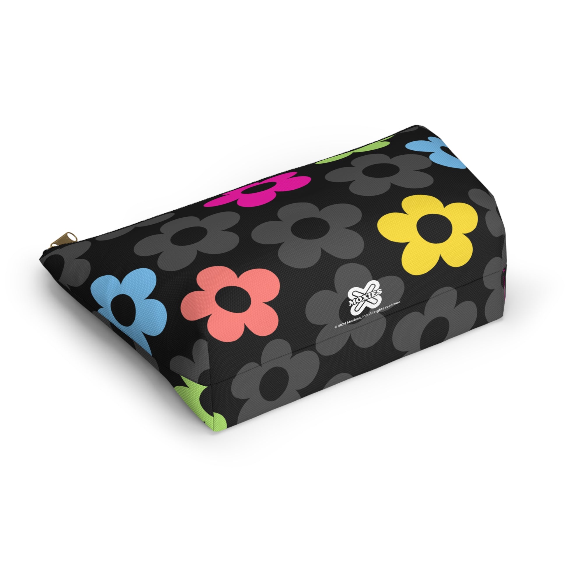 Our bright Moxie mini flower pattern comes in two sizes, small and large. These pouches can be used for pretty much anything! They make excellent pencil cases and makeup bags. They are constructed from a durable material with a zipper closure.