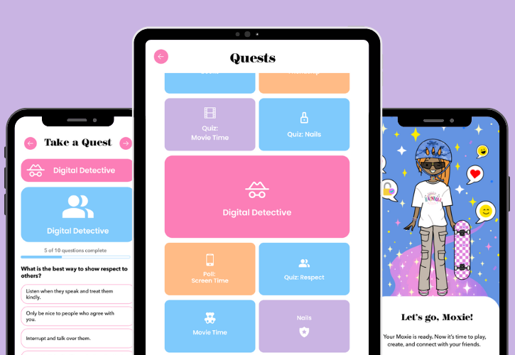 Take on fun daily challenges—like polls and quizzes—that build skills and unlock rewards to customize your Moxie and more. Quest content is built around five core themes: Digital Literacy, Confidence, Social-Emotional Growth, Skill Building, and Just-for-Fun moments—giving girls an engaging way to learn, grow, and express themselves.